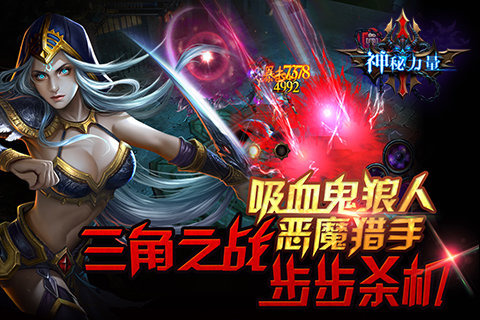 游戲構(gòu)建了以吸血鬼法師、狼人劍士和惡魔獵手組成的魔幻世界觀。劇情跌宕起伏,代入感十足,在循序漸進(jìn)的暗黑故事中,逐步引導(dǎo)玩家參與到三大勢(shì)力之間的宿命恩怨對(duì)決中來。