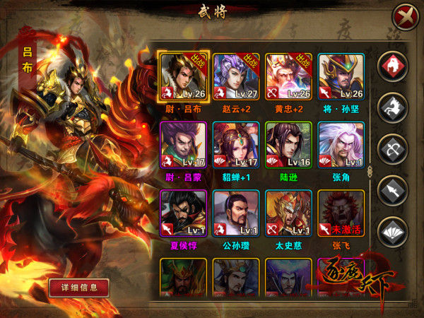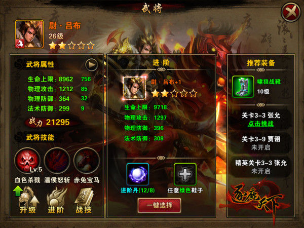 通過消耗材料進行武將進階,進而提升武將的屬性值。