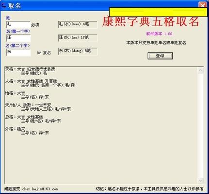 5)查看已經(jīng)取好的單姓單名的五格及其運(yùn)數(shù)