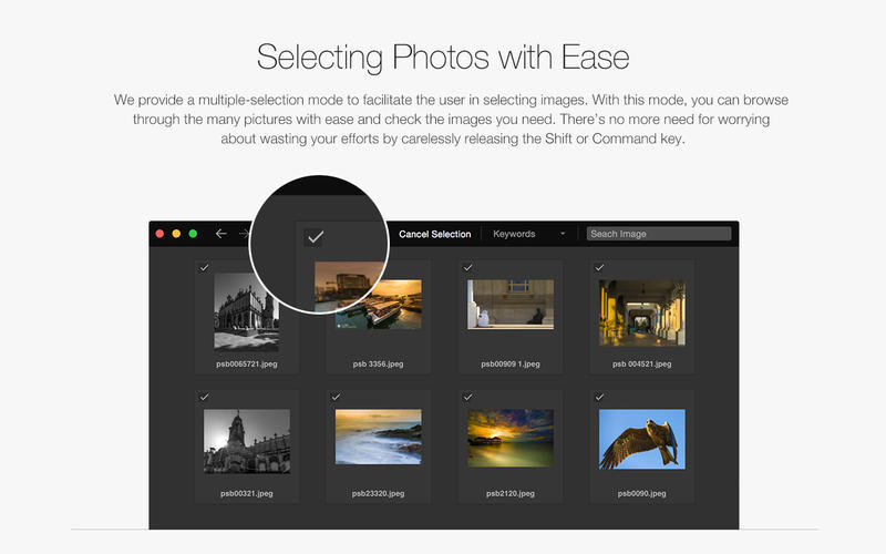 Pixy: PhotoManager for Mac幫助你輕松選擇圖片:提供多次選擇模式,方便用戶選擇圖片。通過這種方式,您可以方便地瀏覽很多圖片,檢查你需要的圖片。不再需要擔(dān)心浪費(fèi)你的時間去整理它們。