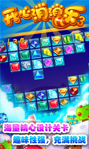 開心消消樂3是一款史上最萌的休閑類消除游戲,全民休閑,2000萬玩家熱薦!年度人氣最爆棚的消除游戲,海量精心設(shè)計(jì)關(guān)卡,趣味性強(qiáng),充滿挑戰(zhàn)!天天領(lǐng)獎(jiǎng)勵(lì)!關(guān)關(guān)有驚喜!新寶石駕到,賣萌求包養(yǎng)!