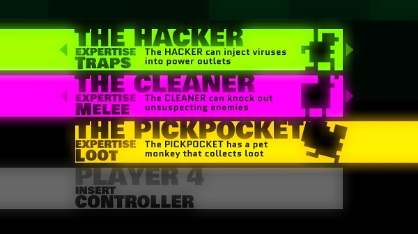 《摩納哥:你的就是我》的是一款畫面有點(diǎn)抽象的動作類游戲,本作中你可以通過聯(lián)網(wǎng)和好朋友一起合作闖關(guān),最多支持4人同時聯(lián)機(jī),你也可以通過STEAM平臺來尋找一起玩的戰(zhàn)友。
