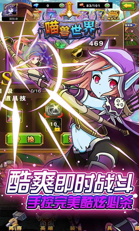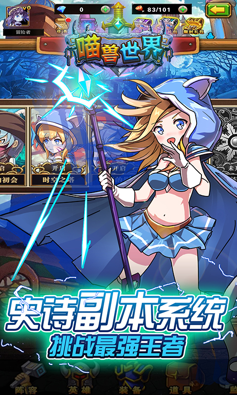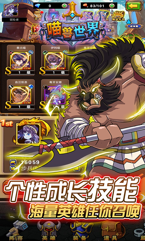 喵獸世界:4K畫質(zhì)?超強策略?多元玩法?豐富系統(tǒng)?良心手游?喵獸世界就是你雙宿雙飛的不二選擇——情懷與品質(zhì)一色,逼格與地氣齊飛。作為一款主打策略的RPG游戲,喵獸世界擺脫了市面上“10個手游7個傻,8卡牌,9坑爹”的現(xiàn)狀,徹底摒棄無腦推怪的桎梏,從玩法,系統(tǒng),到人設(shè)和劇情,都圍繞著強策略進行,讓您在游戲中體驗極致策略的饕餮盛宴。4K畫質(zhì):本游戲采用Cocos2d最新前沿技術(shù),打造超贊游戲畫面,無論是角色的動態(tài)原畫,還是戰(zhàn)斗中酷炫的游戲光影,都能給您帶來無與倫比的視覺體驗。