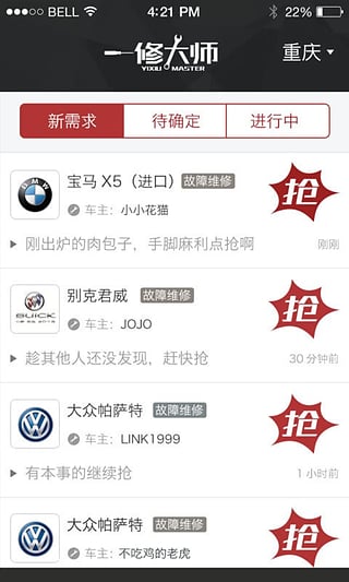一修大師汽修企業(yè)手機客戶端,提供一鍵搶單,即時聊天,客戶管理,訂單管理等功能,幫助汽車維修企業(yè)隨時隨地進行業(yè)務(wù)管理。是汽修商家和技師的建立品牌,獲取潛在用戶的高效工作平臺。