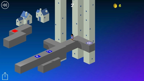 游戲的難度有點大,需要有空間感。游戲玩法很簡單,踩各種符號,會轉(zhuǎn)變方向,當踩到紅色方塊時,即可進入下一關(guān)。