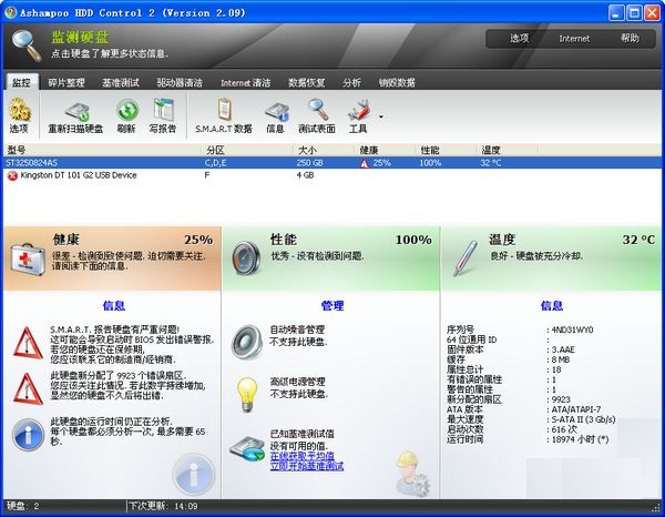 2. 增強(qiáng)的用戶界面,利用提示顯示硬盤的健康、性能和溫度信息