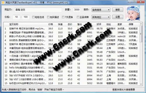 淘寶大買家(TaoBaoBuyer) 是一款方便淘寶買家對(duì)淘寶的海量寶貝中的價(jià)格、快遞費(fèi)、已賣出數(shù)量、賣家信用、賣家好評(píng)率等信息進(jìn)行搜索、比較、排序的綠色小軟件