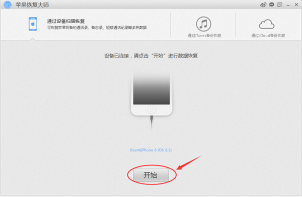 第一步:打開蘋果恢復(fù)大師,首頁界面如下圖,點(diǎn)擊【開始】。