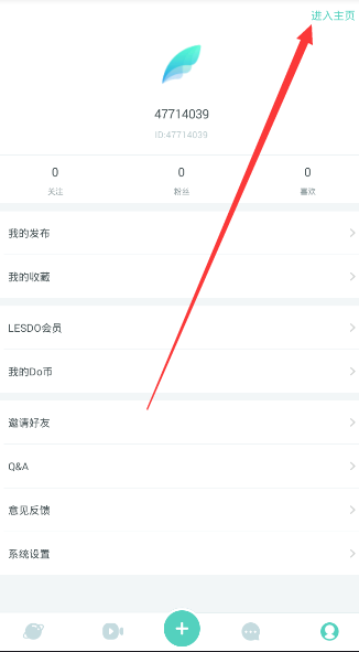 1、首先進(jìn)入軟件,然后進(jìn)入【我的】頁面,在右上角選擇【進(jìn)入主頁】;