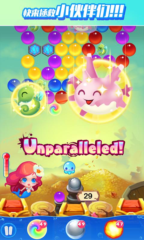 8000萬(wàn)粉絲選擇的超人氣泡泡龍游戲,全新二代隆重登場(chǎng)! 精彩爽快,有趣耐玩,不聯(lián)網(wǎng)也可以玩喲現(xiàn)已開(kāi)啟全新玩法和7大場(chǎng)景,在神秘的亞特蘭蒂斯海底世界,跟美人魚(yú)MM一起奪取神秘光玉,解救萌寵,對(duì)決Boss,眾多精心奇妙的關(guān)卡等著您的挑戰(zhàn)!