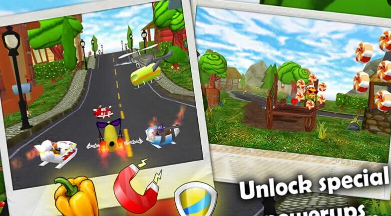 水果賽車游戲走的是炫麗的3D卡通路線,整個(gè)場(chǎng)景的色彩豐富、艷麗,水果小鎮(zhèn)上的風(fēng)景優(yōu)美,房屋和周邊的景物都以Q版造型打造,讓大家仿佛在體驗(yàn)一部充滿樂(lè)趣的動(dòng)畫(huà)片,各種可愛(ài)的水果寶寶,造型各異,用擬人化的手法打造,按上輪子的它們已成為了一部部卡哇伊的賽車。動(dòng)感歡樂(lè)無(wú)極限