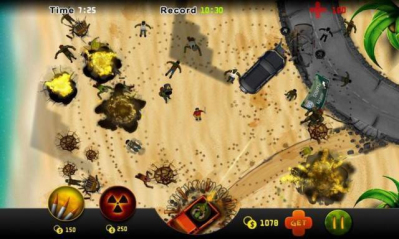 切劃屏幕來控制瞄準(zhǔn)器,瞄準(zhǔn)僵尸后會(huì)自動(dòng)射擊;左下角可以召喚空中部隊(duì)發(fā)動(dòng)空襲,點(diǎn)擊然后拖動(dòng)到想要空襲的地方即可;要保證僵尸不要靠近主角,否則失血過多就Game Over了。