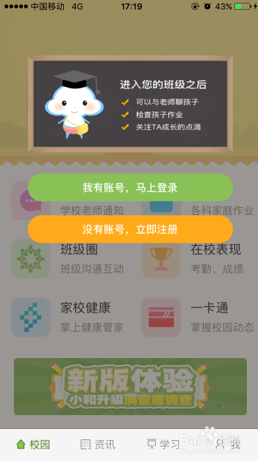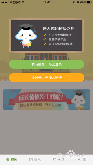 登錄和教育客戶端,點擊我有賬號馬上登錄。
