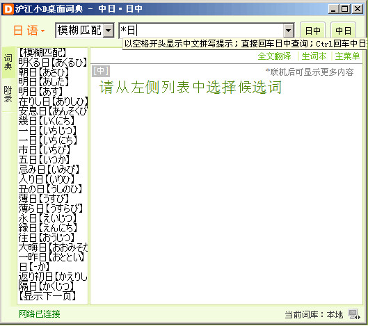 2、單擊滬江小d日語詞典的【中日】按鈕后按回車鍵即可。