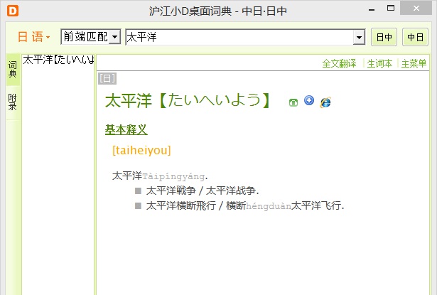 滬江小D日語詞典是一款中日日中桌面詞典軟件,充分考慮中國人的使用習(xí)慣,為日語學(xué)習(xí)者度身定制。該詞典擁有海量的日語詞庫,并支持屏幕取詞、真人發(fā)音以及TTS朗讀等功能。此外,它還集成了網(wǎng)絡(luò)詞庫和網(wǎng)絡(luò)生詞本,并提供了專業(yè)的日文翻譯、強(qiáng)大的模糊查詢、及優(yōu)秀的日語在線翻譯等服務(wù)。滬江小D日語詞典涵蓋所有日漢翻譯功能,囊括日語單詞的發(fā)音,解釋,參考例句等內(nèi)容,是極具人氣的在線詞典,歡迎下載使用!