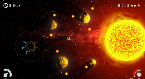 《恒星熔解(SolarFlux)》的故事背景設(shè)定在未來的太空。經(jīng)過數(shù)萬億年的歷史進程,星系中許多恒星能量耗盡,正走向自我毀滅的旅程。沒有復(fù)雜的星際斗爭,玩家需要駕駛一架宇宙飛船,收集星際離子,并把它們發(fā)射到即將湮滅的恒星中,從而修復(fù)恒星、拯救宇宙。【軟件特點】