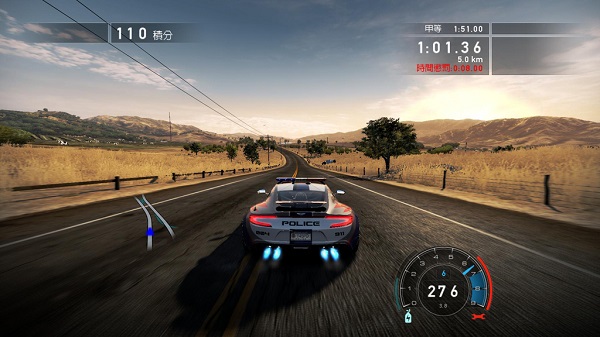 對(duì)于一個(gè)游戲新手來說。賽車游戲看起來是最容易上手的,“就像公園里的碰碰車一樣吧”大家常這么想。因此真正易上手的競速,不應(yīng)再駕馭車輛的難度上有過多的障礙。并且在賽道與賽車的搭配上,也盡力做到賽車不被賽道折騰——?jiǎng)硬粍?dòng)就去減速沙坑里中場休息。Criterion Games不僅把新一代極品飛車的賽道鋪設(shè)的寬闊平直,更是為兩側(cè)布上勝景。在如畫的風(fēng)景中與風(fēng)同行,又有哪一個(gè)玩家會(huì)拒絕呢?可是如果真正沒有了挑戰(zhàn)整個(gè)競速游戲的駕駛過程就會(huì)活像著名游戲作品——沙漠巴士,并且很早時(shí)候游戲設(shè)計(jì)師們就發(fā)現(xiàn)了這點(diǎn),所以我們看到上世紀(jì)80年代中類似縱版射擊的競速游戲Road Fighter都通過制造復(fù)雜路況的方式來打造一個(gè)不需要依靠駕駛技術(shù)而依靠反應(yīng)速度來取勝的游戲規(guī)則?!稑O品飛車熱力追蹤》系列中警車的出沒更是將這種反應(yīng)考驗(yàn)提升了一個(gè)境界,玩家不僅需要靠反應(yīng)還需要靠盤算以及一些外加的運(yùn)氣因素。