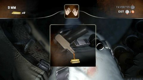 和《生化危機》系列不同,這個游戲的道具儲藏點特別少,鬼屋魔影5只允許你的外套里面幾個口袋放道具。而且每一邊只能放一個種類的道具。在一個游戲里面使用道具還要低頭在衣服口袋里面掏來掏去的實在是笨重拖沓,你悶著頭找道具的時候怪物還同時能攻擊你。要把物品結(jié)合成新的物品,這個此類游戲里必有的橋段,做的同樣讓人很失望。你想把引信和瓶子結(jié)合起來嗎? 你不能先選瓶子 –你必須先選擇引信。還有當那些“老鼠”和“蝙蝠”追著你的車煩的你牙根癢,你要是能忍過去這種不和諧就真的太好運氣了。這個本來是想增加緊張感和挑戰(zhàn)性的元素,結(jié)果變成了你在垃圾箱等地方找一次性武器的時候必定要經(jīng)歷的情況 。而且只要聚成一堆,他們就以最佳狀態(tài)各自為戰(zhàn),你得一邊抵抗敵人一邊處理道具。