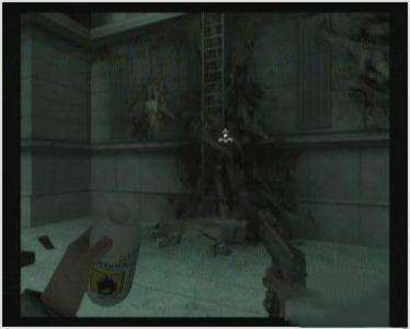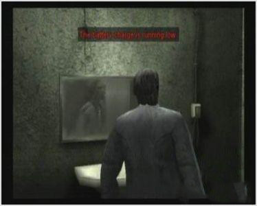 一開始主角處于迷糊狀態(tài),需不停的按十字鍵的下鍵,否則會看不清眼前的事物,迷迷糊糊在走廊上樓,準備進門的時候屋子突然震動封了路,由另一門進去后一直來到一面鏡子處,看自己半天后一拳將鏡子打碎,之后狀態(tài)會恢復正常。