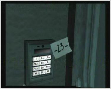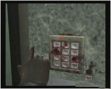 開啟密碼門后進入經(jīng)過長走廊來到一巨大的鐵門前,在左邊一小鐵門前按指紋時會有保安跑出來,經(jīng)他的幫助開啟指紋門后進去后再開大電梯門,之后上電梯下樓。