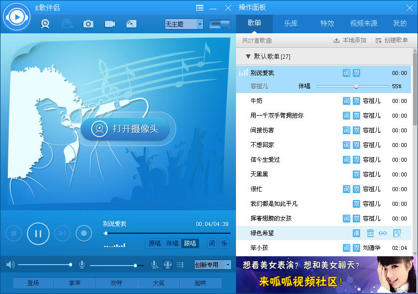 5.上麥時(shí)K歌伴侶自適應(yīng)聊天室視頻尺寸,讓視頻更清晰;