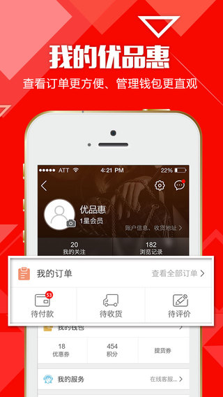 3、我的優(yōu)品惠:查看訂單更方便,管理錢包更直觀。