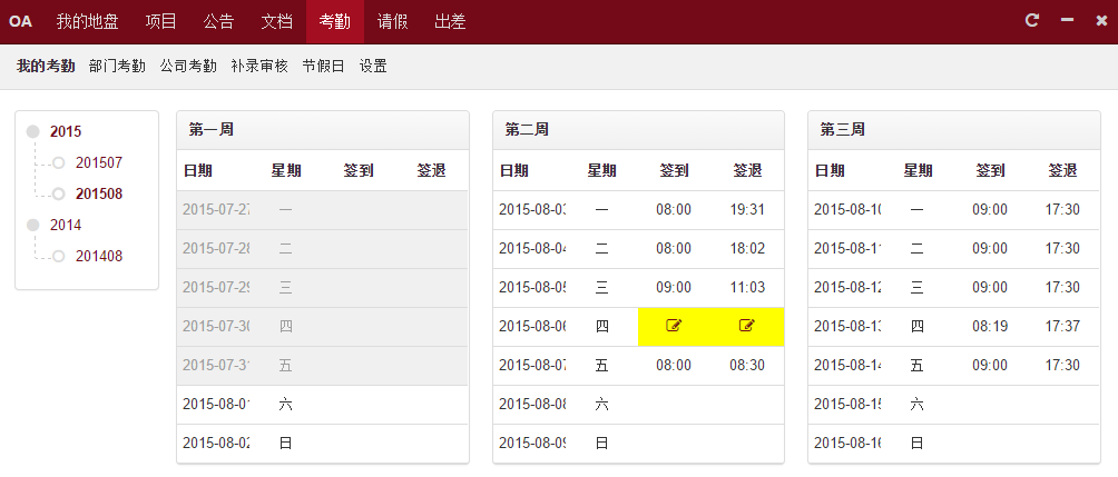 1、在OA里面添加考勤、請(qǐng)假、出差功能2、實(shí)現(xiàn)考勤參數(shù)設(shè)置功能