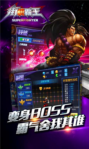 街機(jī)霸王OL是一款次時(shí)代的動(dòng)作格斗類手機(jī)游戲,超炫技能體驗(yàn)全屏秒殺,懷舊街機(jī)重塑熱血輝煌,極致操作,點(diǎn)燃指尖風(fēng)暴,《街機(jī)霸王》完美歸來(lái),與你重溫街機(jī)才有的打擊快感。在極富幻想的虛空世界中,感受節(jié)奏暴爽的無(wú)限連擊與秒殺全屏的華麗大招。獨(dú)創(chuàng)BOSS變身技能系統(tǒng),一起接受來(lái)自格斗的力量召喚,盡情釋放你的暴怒鐵拳。是咆哮還是主宰,是信仰還是傳說(shuō),約上伙伴再瘋狂一次。