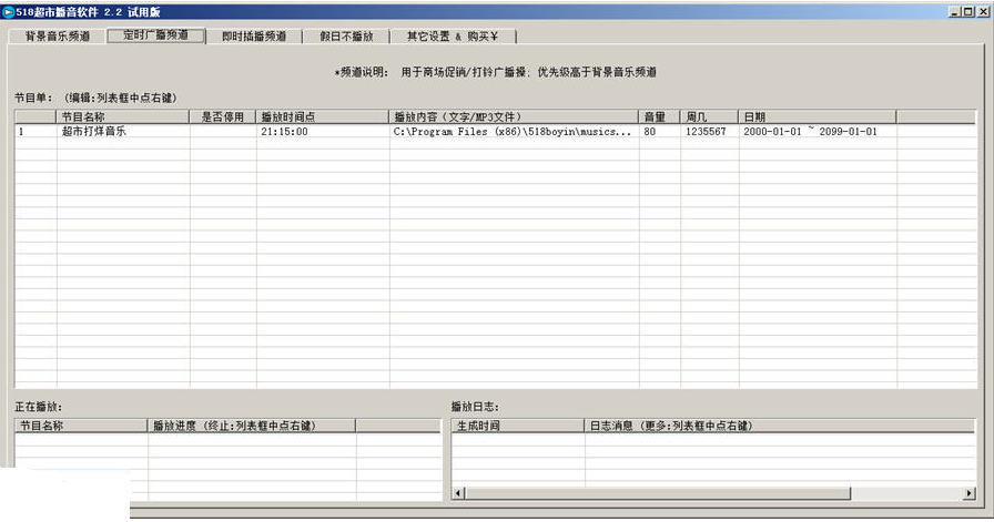 2、定時廣播頻道,用于學(xué)校廣播體操、超市促銷播音;