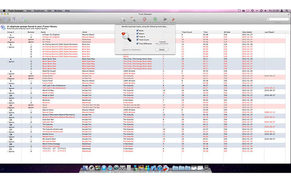 TuneSweeperforMac是一款Mac平臺的iTunes音樂管理工具,在iTunes資料庫中迅速調(diào)整掃描查找和刪除重復的曲目,TuneSweeper將顯示您的iTunes資料庫中重復的組,快速搜索特定曲目重復列表。TuneSweeper顯示重復的歌曲在您的iTunes資料庫中的發(fā)現(xiàn)和建議組跟蹤保持基于你的偏好。即最高的質(zhì)量,最新的比賽,新增加等,可以重寫此自動選擇在一組組的基礎上。