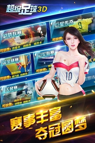 《超級足球3D》是一款體育競技養(yǎng)成類游戲,游戲采用了市面上罕見的3D寫實類畫面效果。帶您走進一場全新3D視覺的足球盛宴。在這里,創(chuàng)建屬于您自己的足球夢之隊,培養(yǎng)出最杰出的球員。暢享最流暢的3D球場畫面、最絢麗的特效表現(xiàn)、最逼真的球員陣容和最專業(yè)的球賽解說。