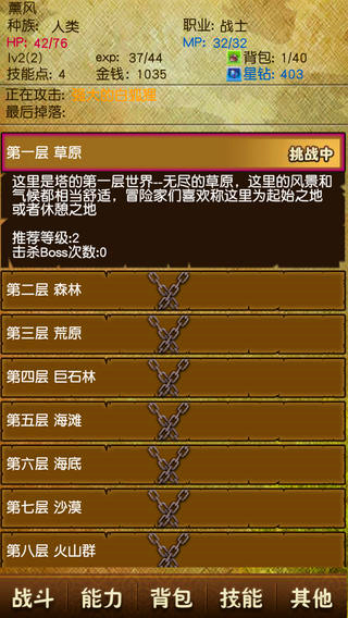 游戲中塔的層數(shù)基本上是無限的,失敗后必須重新來過,4個屬性點平均分配是最簡單而又平衡的加點,對于平均分配的點數(shù)也讓玩家更容易堅持下去。