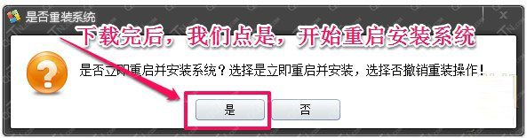 2.等待下載完成后,我們點(diǎn)擊"是"立即重啟并安裝系統(tǒng)。