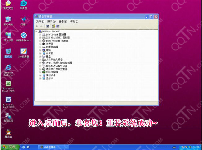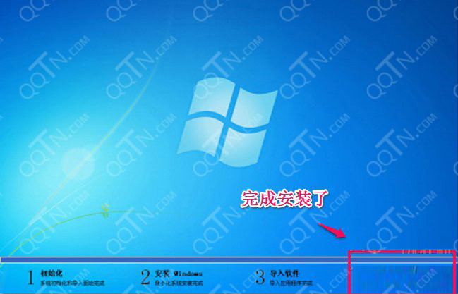 4.GHOST進(jìn)度到100后,會再次重啟電腦。然后正式開始安裝系統(tǒng)。這些都是全自動的。安裝系統(tǒng)部分截圖如下所示: