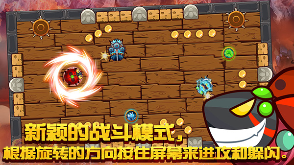 戰(zhàn)蟲(chóng)爭(zhēng)霸是2015最強(qiáng)創(chuàng)新玩法的休閑動(dòng)作單機(jī),需要一點(diǎn)微操,根據(jù)旋轉(zhuǎn)的方向來(lái)躲避和進(jìn)攻,打敗各種邪惡昆蟲(chóng),搶奪海量金幣,成為昆蟲(chóng)之王!【游戲特點(diǎn)】