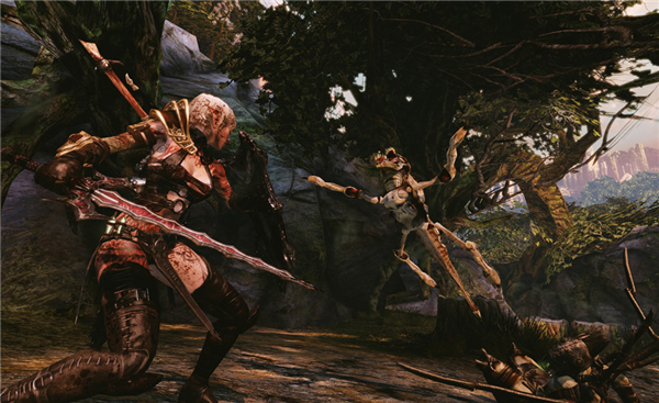 本作主角Caddoc是美式奇幻作品中典型的壯漢形象,而女主角Elara也是經(jīng)典的性感剽悍女戰(zhàn)士形象。Elara是遠(yuǎn)距離作戰(zhàn)專家,善于使用弓箭。Caddoc自然是近距離作戰(zhàn)的高手,將會(huì)用他的劍將敵人肢解。本作將帶來如《戰(zhàn)神》般暢快淋漓的戰(zhàn)斗,與場(chǎng)景的互動(dòng)程度很高,比如推倒一個(gè)大石柱,引發(fā)連鎖反應(yīng),使巨石堆滾落將敵人掩埋。同時(shí)本作也會(huì)插入電影般的過場(chǎng)動(dòng)畫。