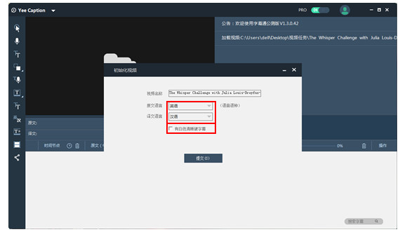 1.選擇正確原視頻和所需譯文的語種;