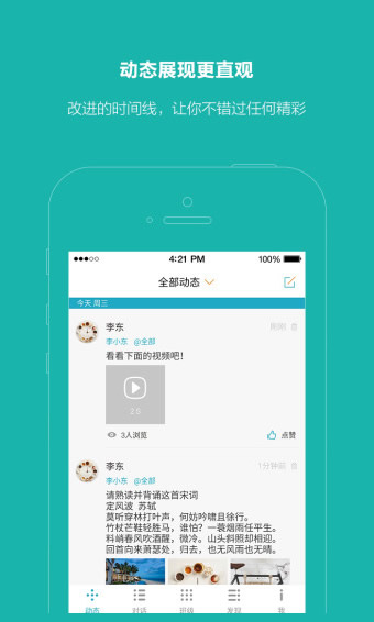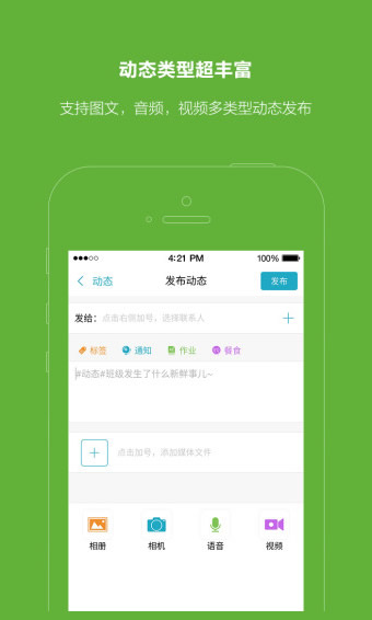 家長(zhǎng)的種種擔(dān)心,我們?yōu)槟謶n(yōu):改進(jìn)的動(dòng)態(tài)時(shí)間線(xiàn),像瀏覽朋友圈一樣,查看孩子的實(shí)時(shí)班級(jí)動(dòng)態(tài)。
