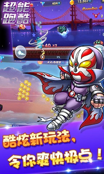 《超能酷跑》是一款跑酷類的休閑游戲??犰判峦娣?,令你爽快極點(diǎn)。合體“機(jī)甲”,告訴沖刺飛行!絕對(duì)無(wú)敵!破壞“連擊”,快速累積高Combo,享受空中踩踏不落地的快感!