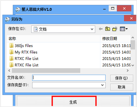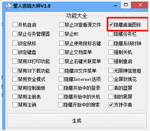 1、這時(shí)候就可以選擇一個(gè)功能2、點(diǎn)擊【生成】,就可以另存為一個(gè)整蠱小工具,把它發(fā)給小伙伴就行了