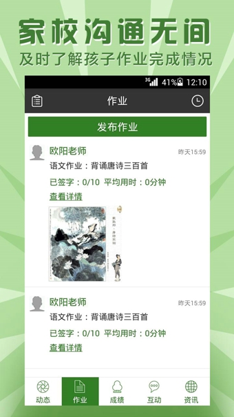 2.老師實(shí)時(shí)發(fā)布作業(yè),發(fā)布考試成績(jī),與學(xué)生家長(zhǎng)互動(dòng),在線家長(zhǎng)會(huì)。
