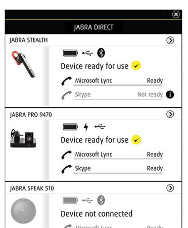 準(zhǔn)備狀態(tài)使用 Jabra USB 音頻設(shè)備與 Jabra Direct 增強(qiáng)您在撥打和接聽軟電話時(shí)的信心。