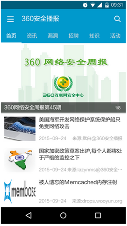 360安全播報(bào)平臺(tái)由360網(wǎng)絡(luò)攻防實(shí)驗(yàn)室整理發(fā)布的軟件,該軟件為安全工作者及時(shí)全面的提供有效信息,360安全播報(bào)中集合了眾多安全資訊,讓用戶一次看個(gè)過(guò)癮,輕松學(xué)習(xí)成為安全達(dá)人。