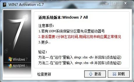 方法一、直接打開WIN7 Activation點(diǎn)擊“點(diǎn)擊驗(yàn)證”(推薦);方法二、在“運(yùn)行”里輸入 slmgr.vbs -dli 并回車;