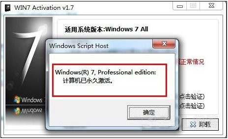 第七步:驗(yàn)證完這一步之后,軟件界面會(huì)彈出WIN7已永久激活
