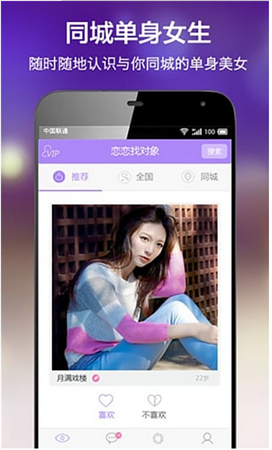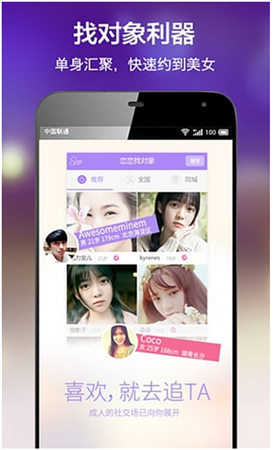 戀戀找對象”是靠譜的交友、陌生人交友App,我們致力于各個年齡短的婚禮交友,徹底解決當(dāng)今社會陌生人交友、溝通難的問題。“戀戀找對象”支持LBS功能讓您輕松發(fā)現(xiàn)附近的優(yōu)質(zhì)對象,戀戀找對象更是一款同城交友,陌生人交友神器!