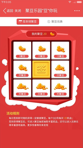 6.聚豆兌換:APP簽到就能領(lǐng)取聚豆,聚豆可在掌上道聚城兌換熱門(mén)道具并參與抽獎(jiǎng)。LOL皮膚、CF武器等精美道具等你來(lái)?yè)尅?