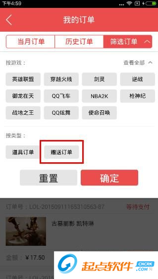 篩選訂單可以通過(guò)游戲來(lái)查看,包括道具訂單,贈(zèng)送訂單都能查看;