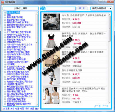 搜索出來的商品可以按照列表方式、大圖方式瀏覽。比淘寶網(wǎng)自己搜索出來的還要豐富,增加了信用等級、最新評論、成交記錄、好評率這些信息,讓網(wǎng)購達(dá)人更好地貨比三家;還有歷史記錄保存了最近所看過的一些寶貝。