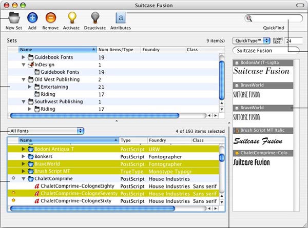Extensis Suitcase Fusion將Suitcase和Font Reserve整合到了一起。結合相關插件,支持InDesign Illustrator 和 QuarkXPress。